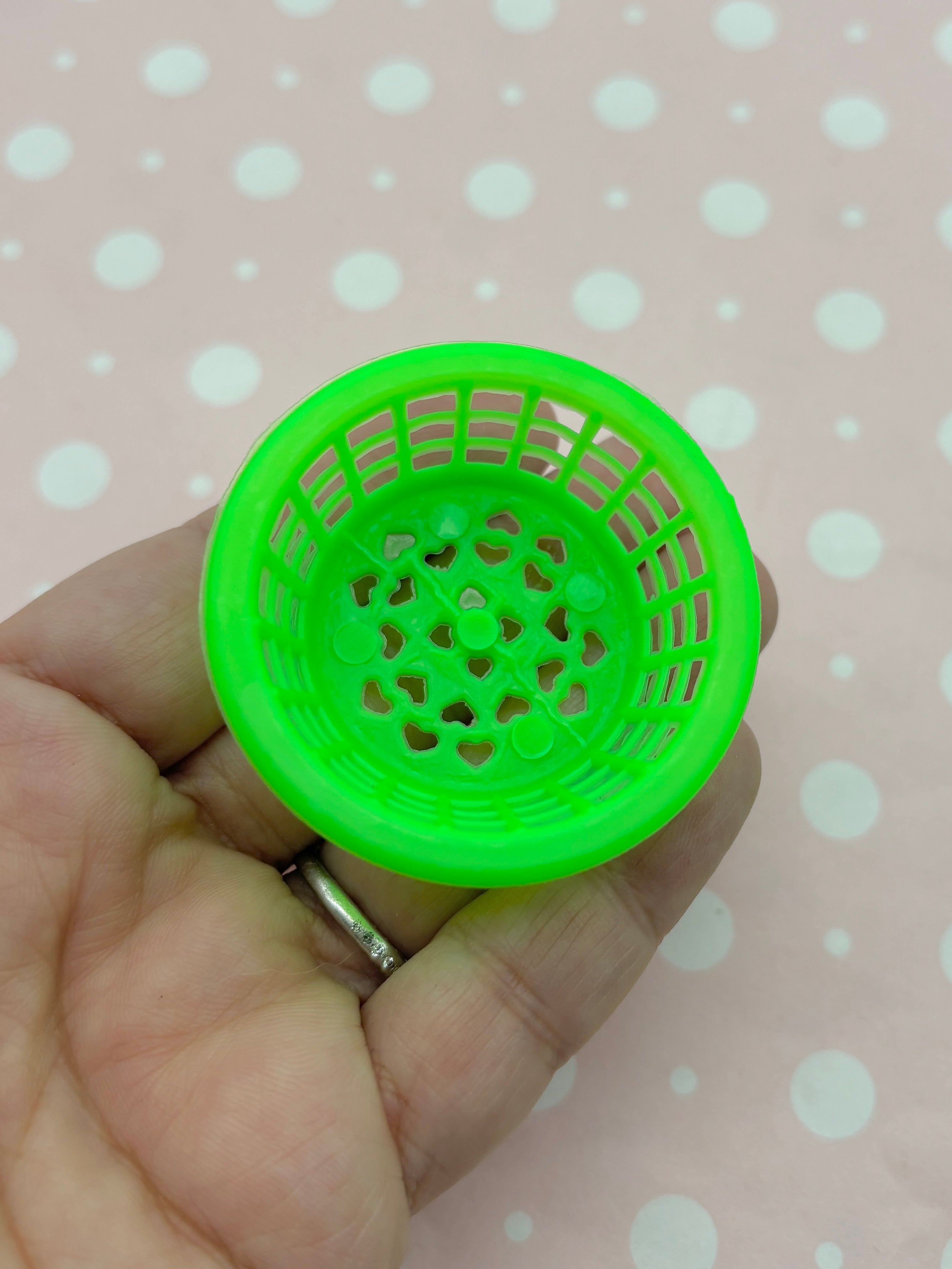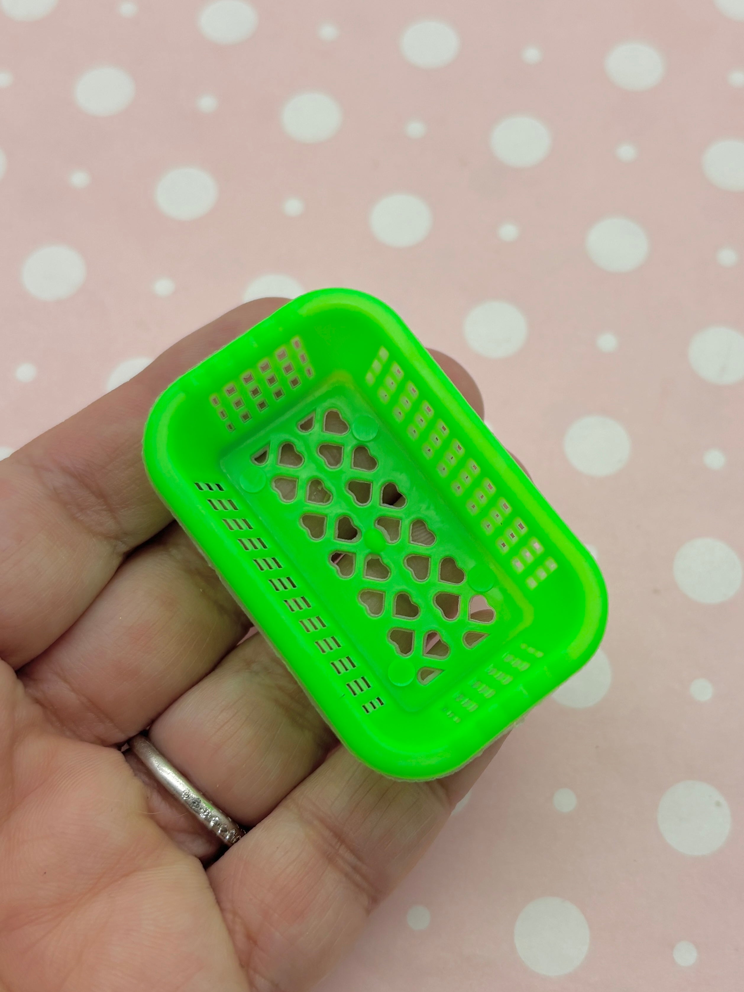 6 Flatbacked Plastic Miniature Dollhouse Basket Strainer Tray for Cabochons for Decoden, Flat Backed Acrylic Plastic Cabs, Fake Food and Doll Props X18