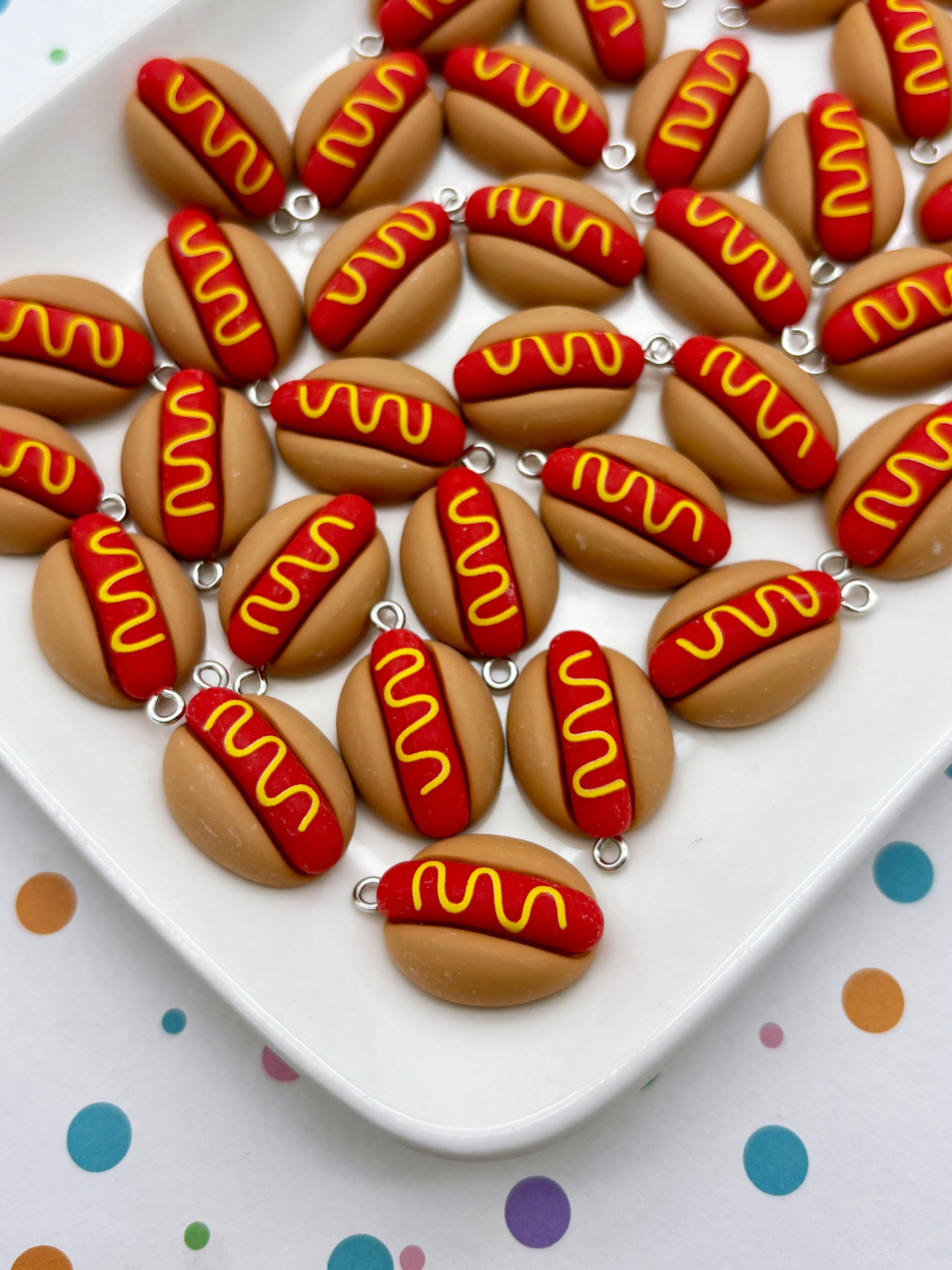 6 Miniature Resin Hotdog Charm Cabochons, Hot Dog Pendant Cabs, 625 is backordered and will ship as soon as it is back in stock.
