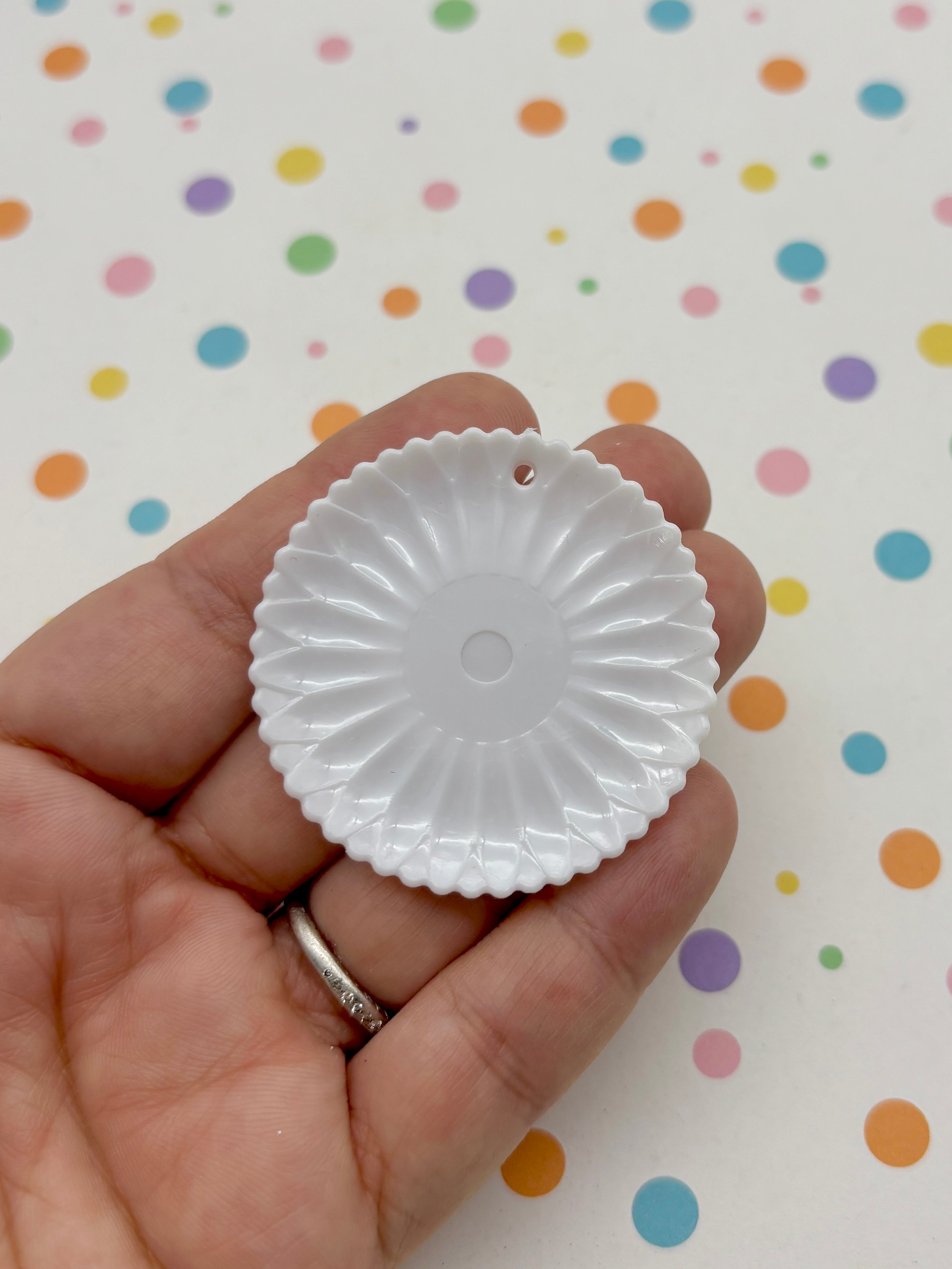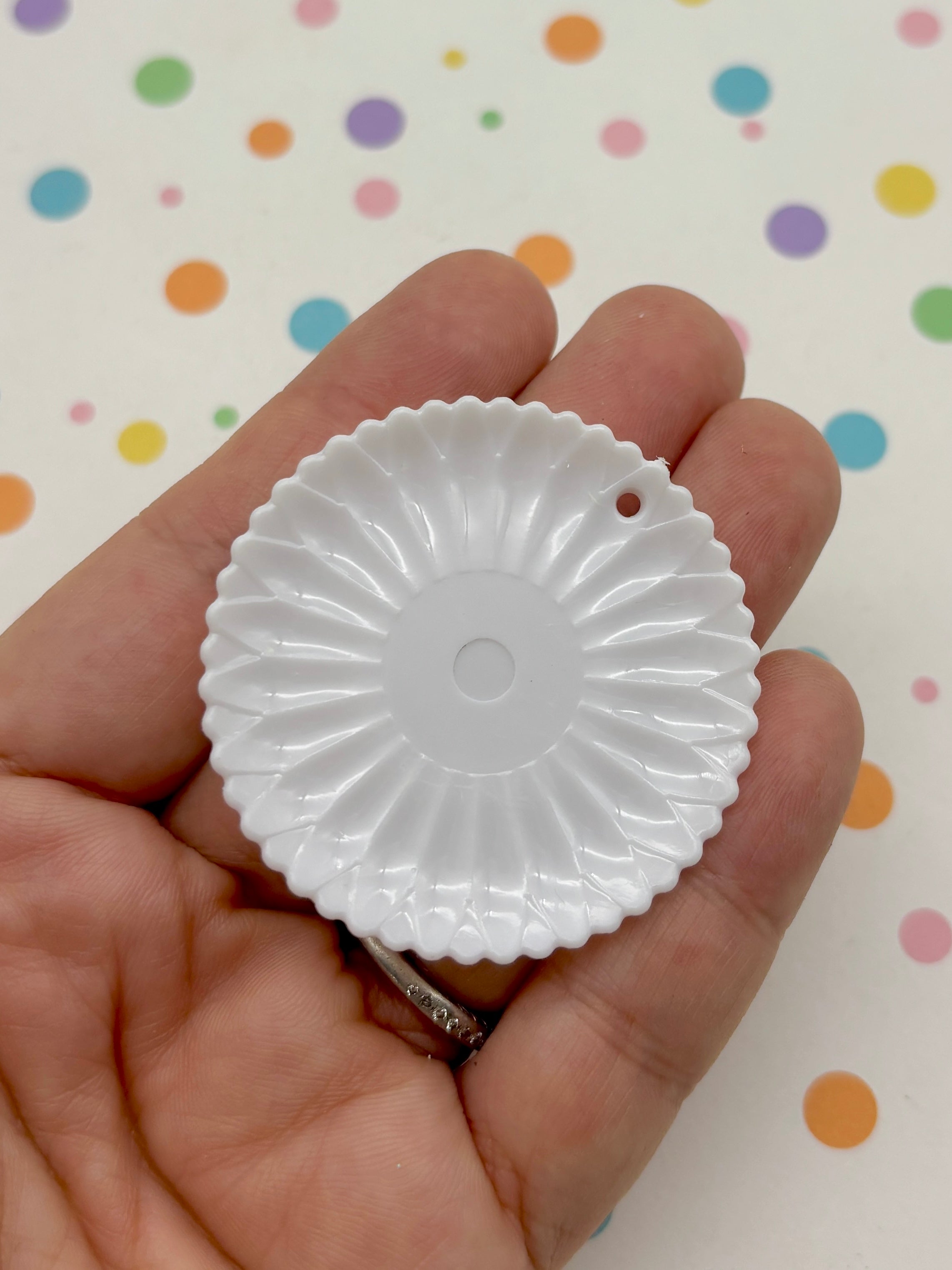 These small white plastic dishes plates etc are super cute and really cute. You will get 6 pieces. They are 45mm across. These can be used for making decoden desert charms, doll house props, fake food etc…