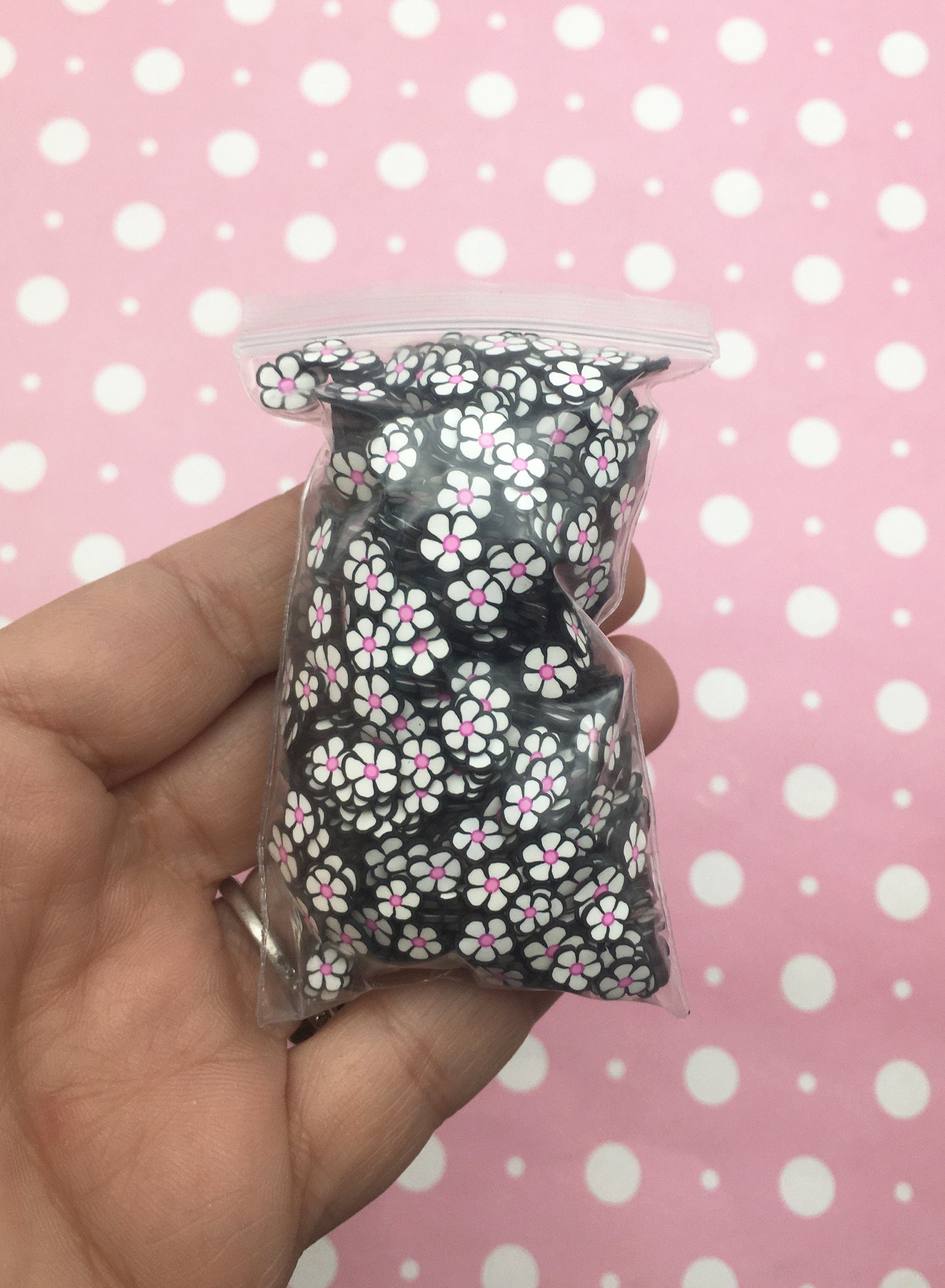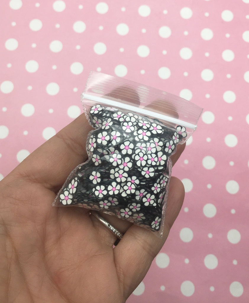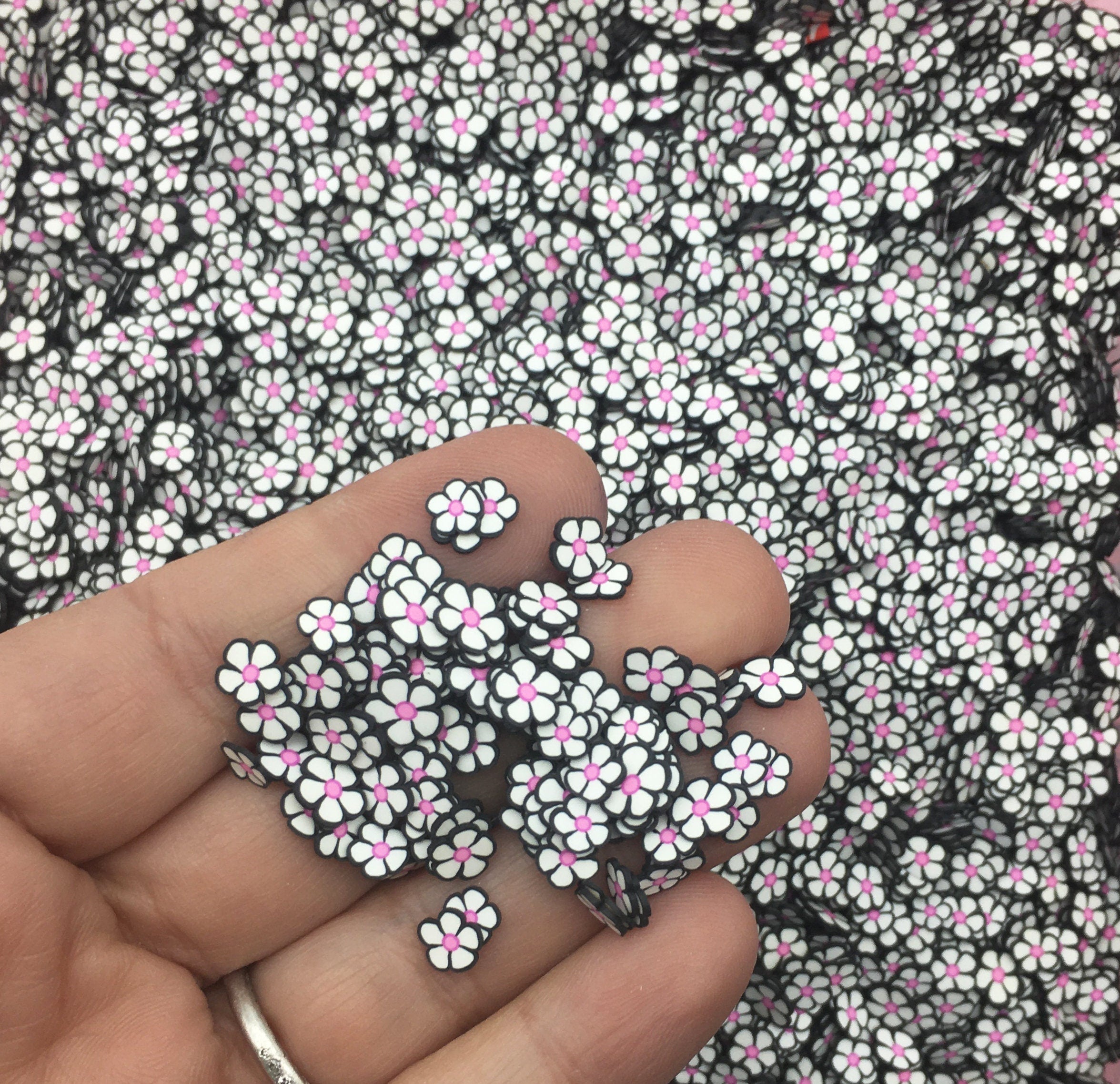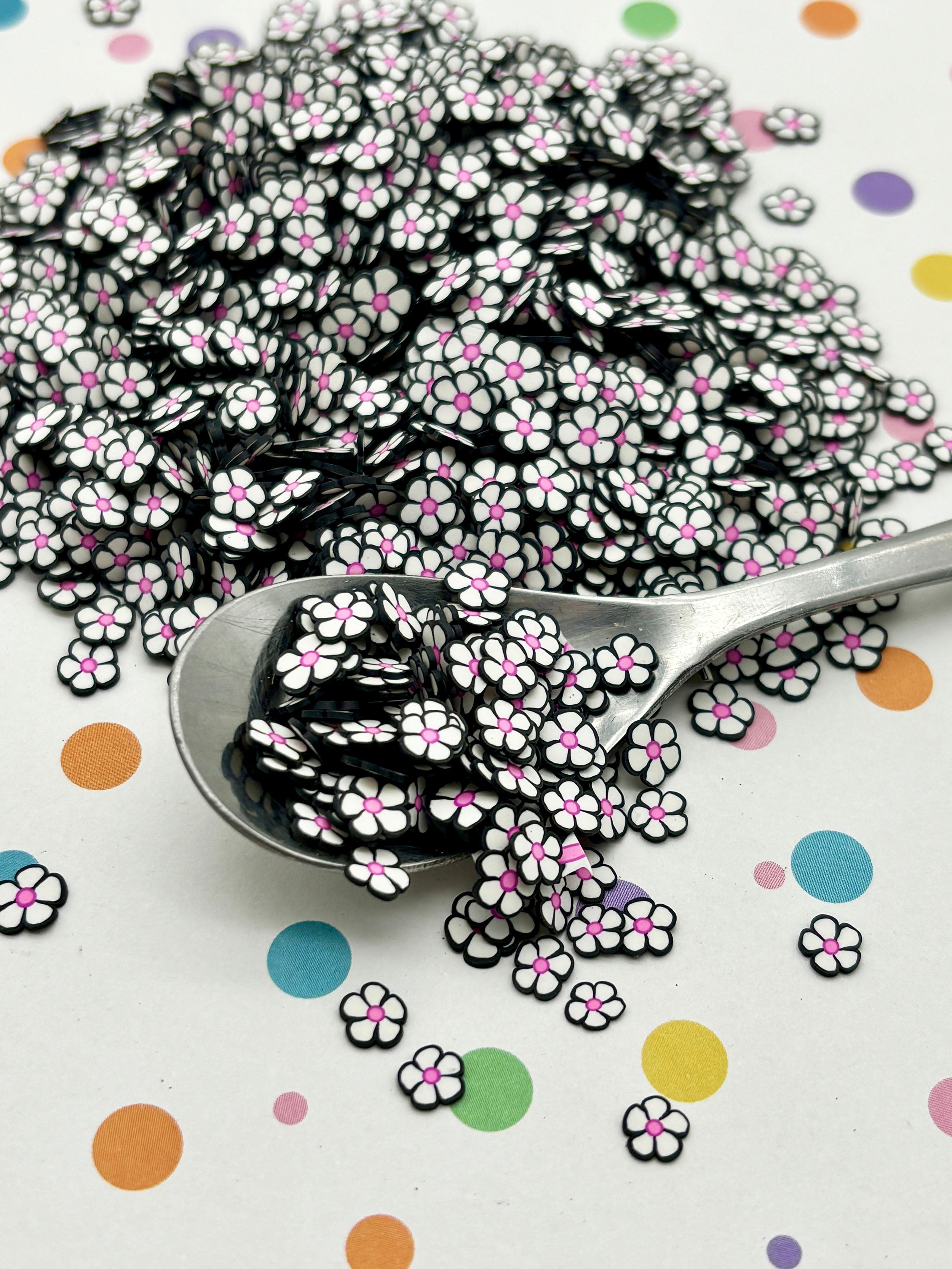 Black White Polymer Clay Flower Sprinkles, Fimo Fake Sprinkle Mix, Resin Embellishment P118