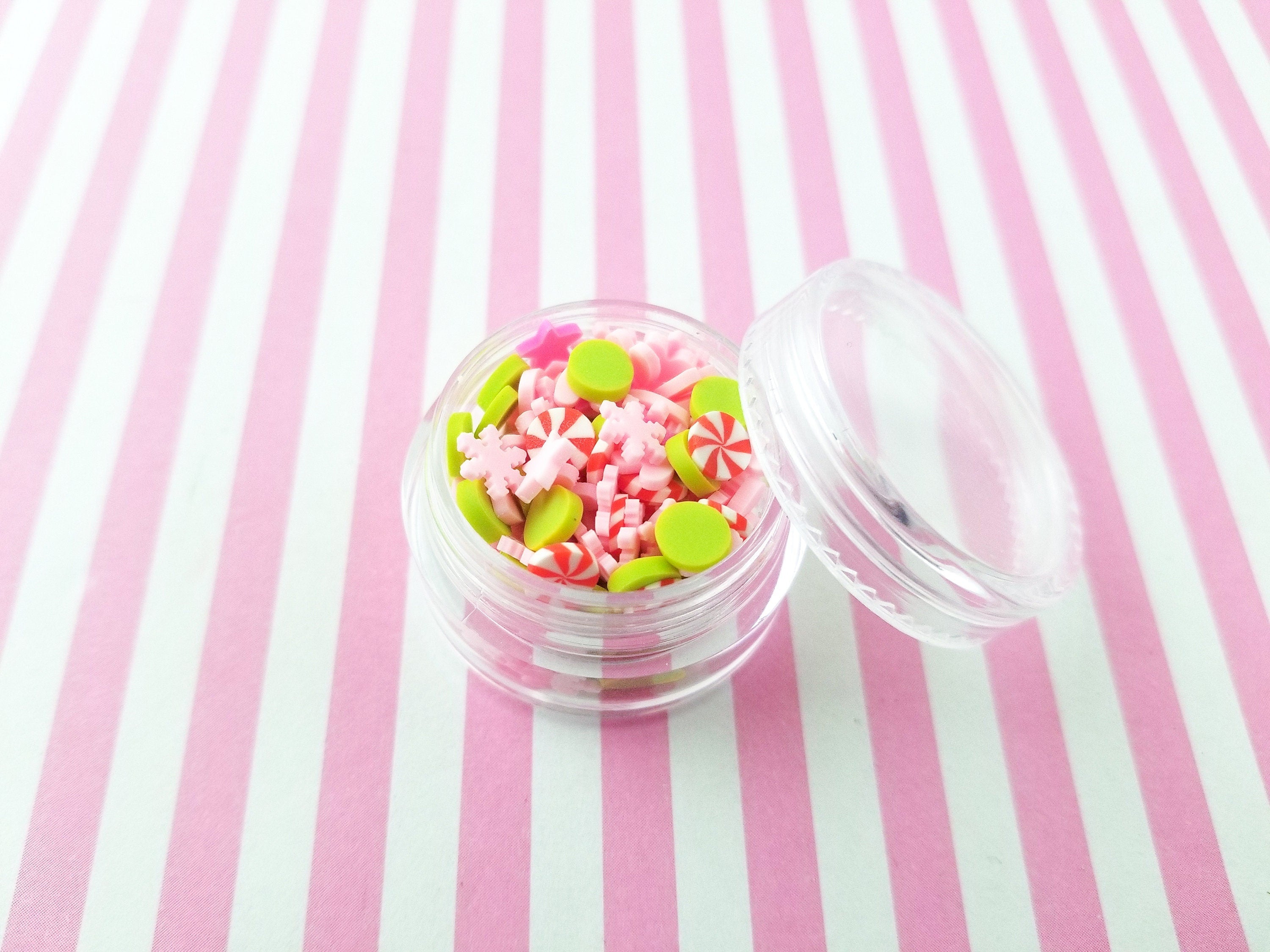 C.L.W. Holiday, Acid Green with Pink Hearts and Snowflakes Sprinkle Mix, Polymer Clay Fake Sprinkles, Decoden Funfetti Jimmies V75