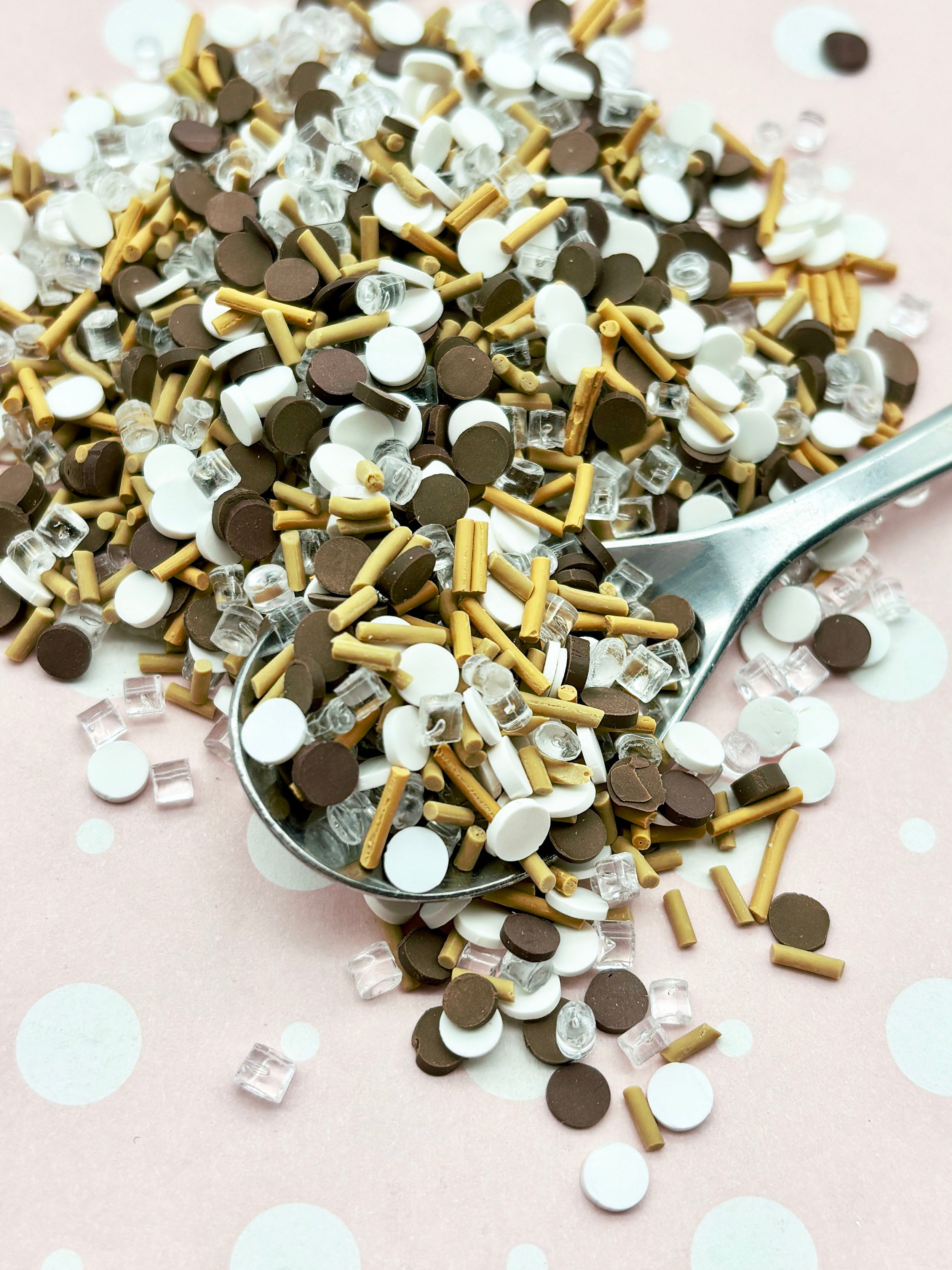 FROZEN MOCHA, Faux Sprinkles with Resin Chips, Fake Sprinkle Mix, Polymer Clay Fake Sprinkles, Decoden Funfett Jimmies, E168