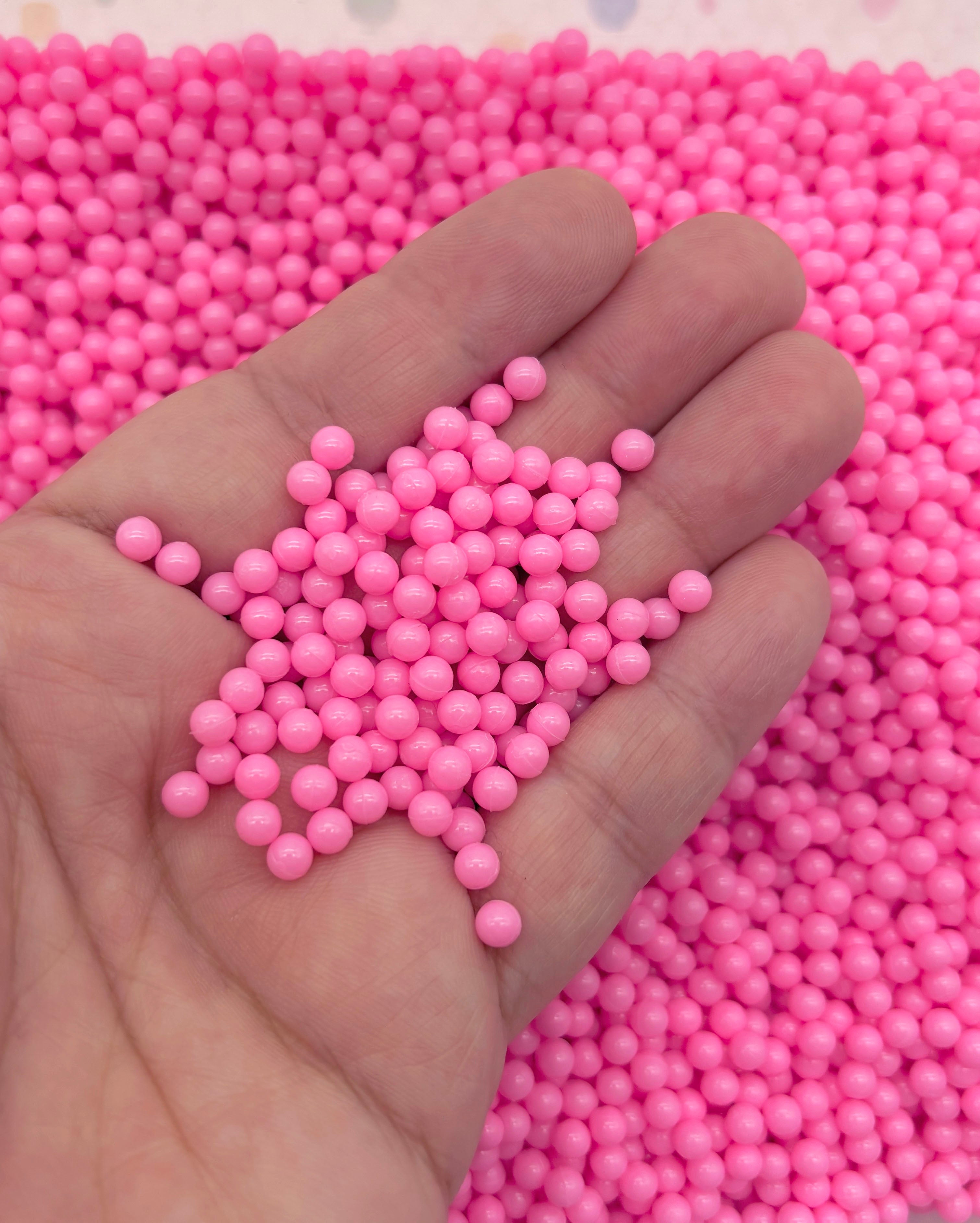 Hot Pink 4mm Boba Caviar Pearls, Faux Nonpareil Acrylic Plastic Dragees, Opaque Resin Caviar No Hole Beads, K224