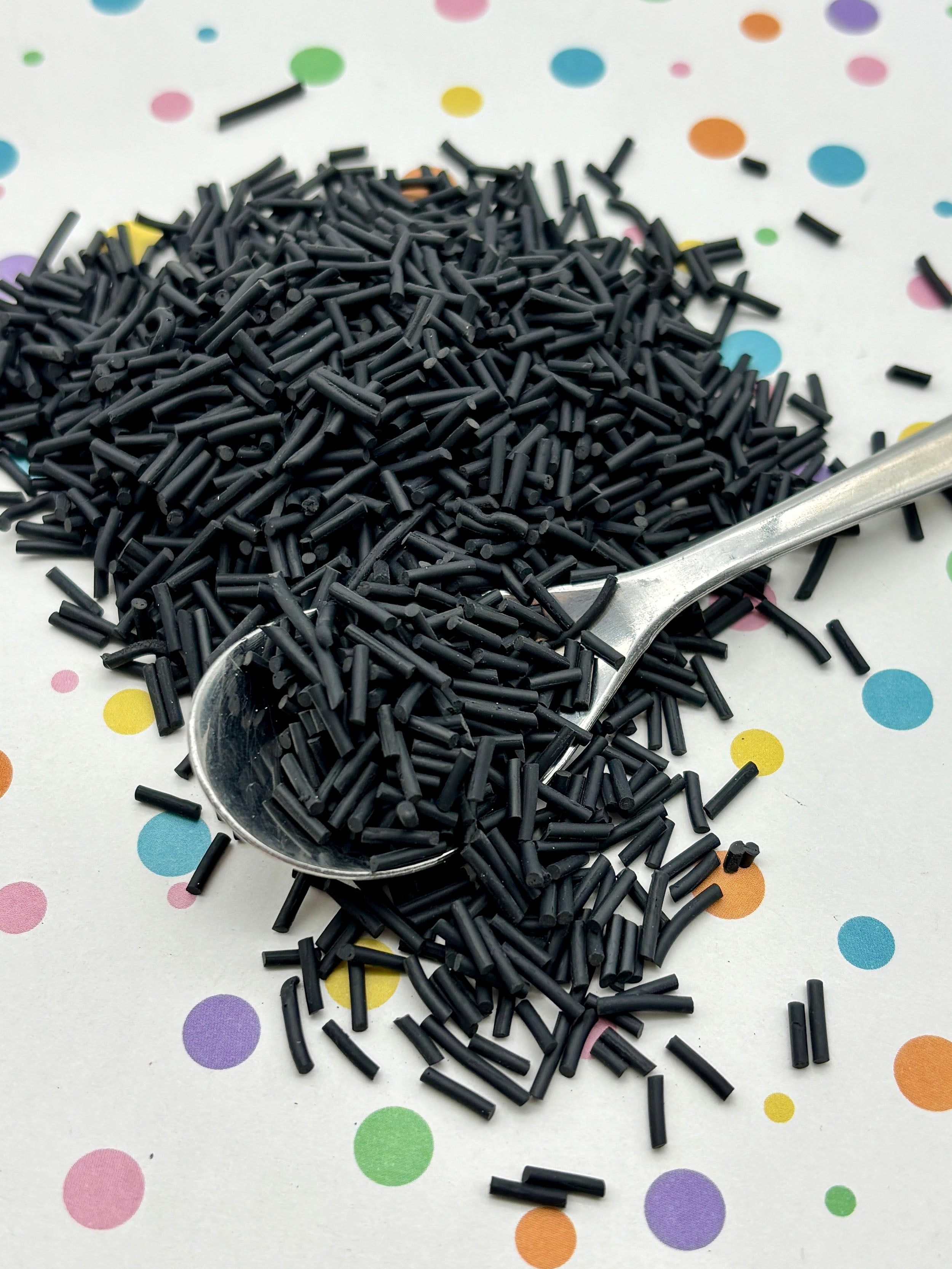 Long Black Polymer Clay Fake Sprinkles, Pick Your Amount, S3