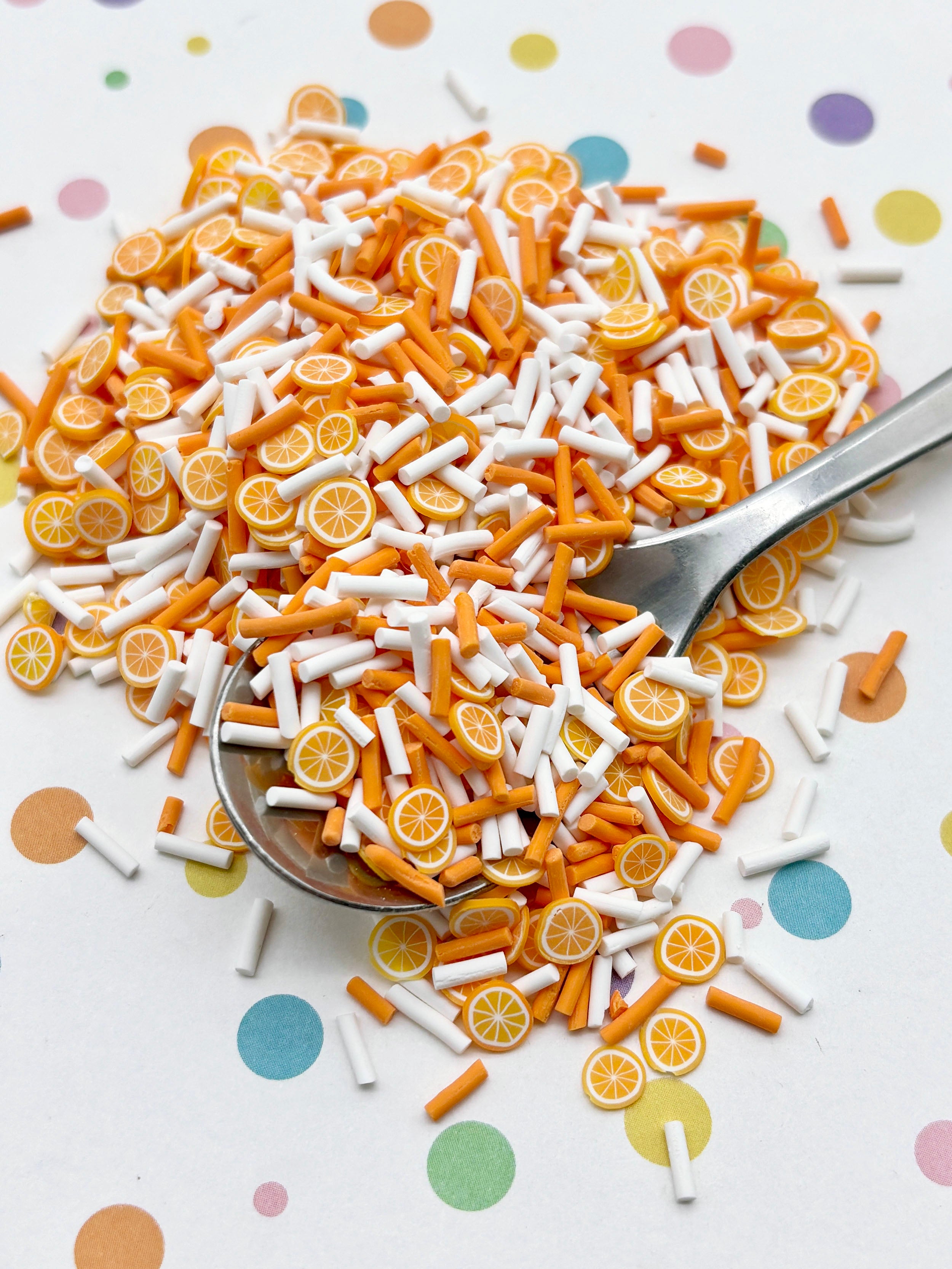 MIMOSA Sprinkle Mix, Bright Orange and White Polymer Clay Fake Sprinkles with Citrus Slices, Decoden Funfetti Jimmies, E97