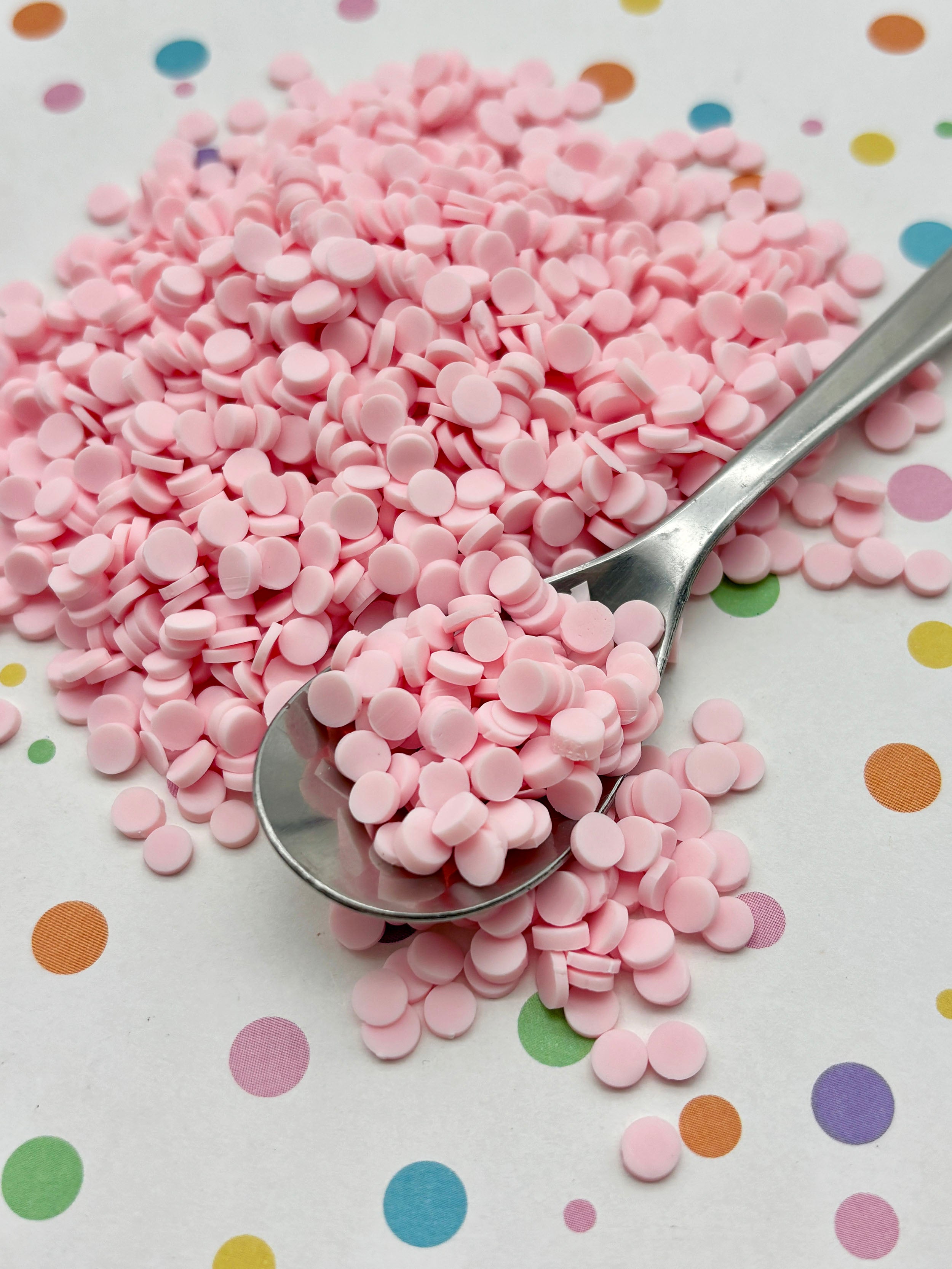 Pastel Pink Chip Polymer Clay Round Confetti Circles, Fake Sprinkles, Decoden Funfetti Jimmies S105