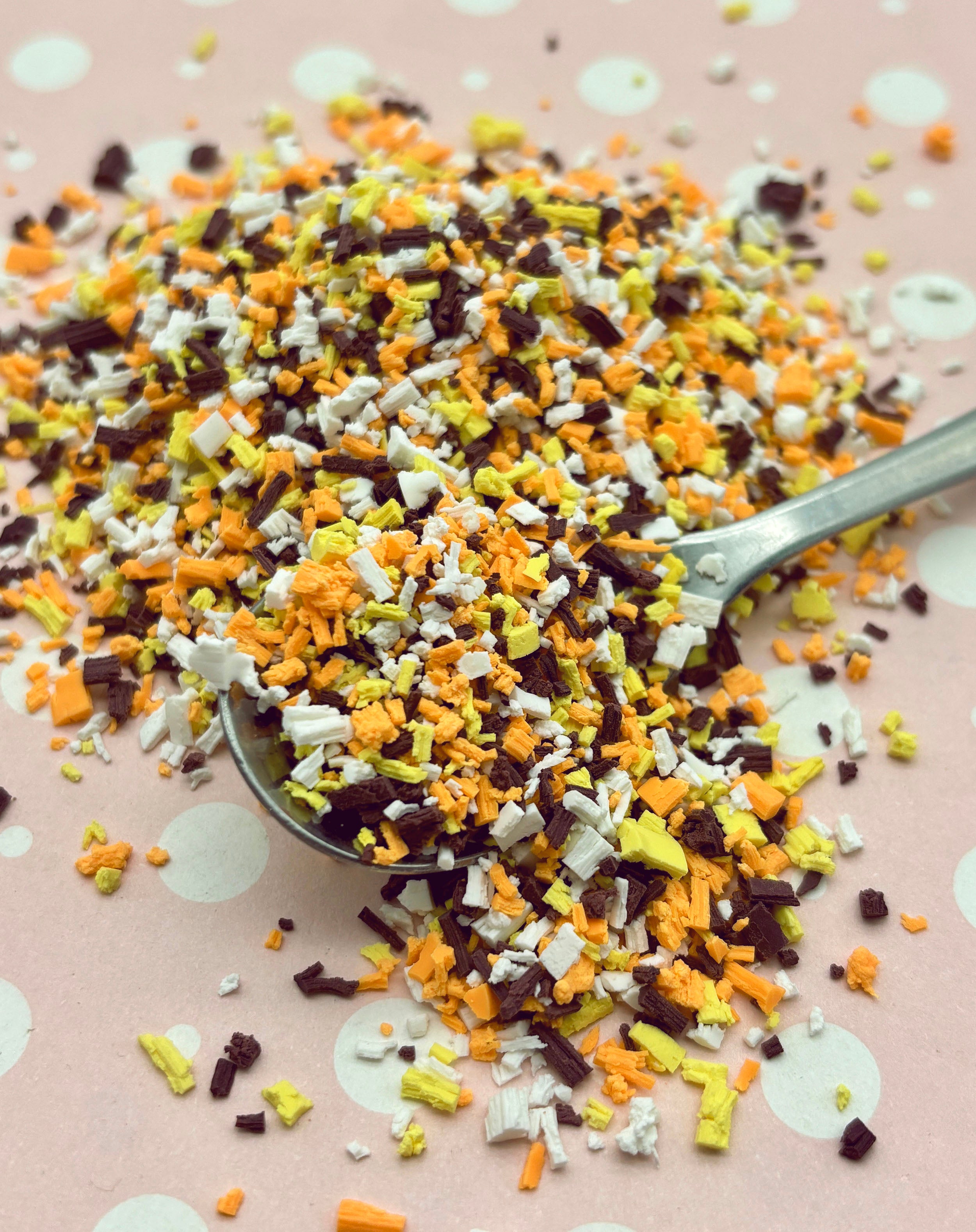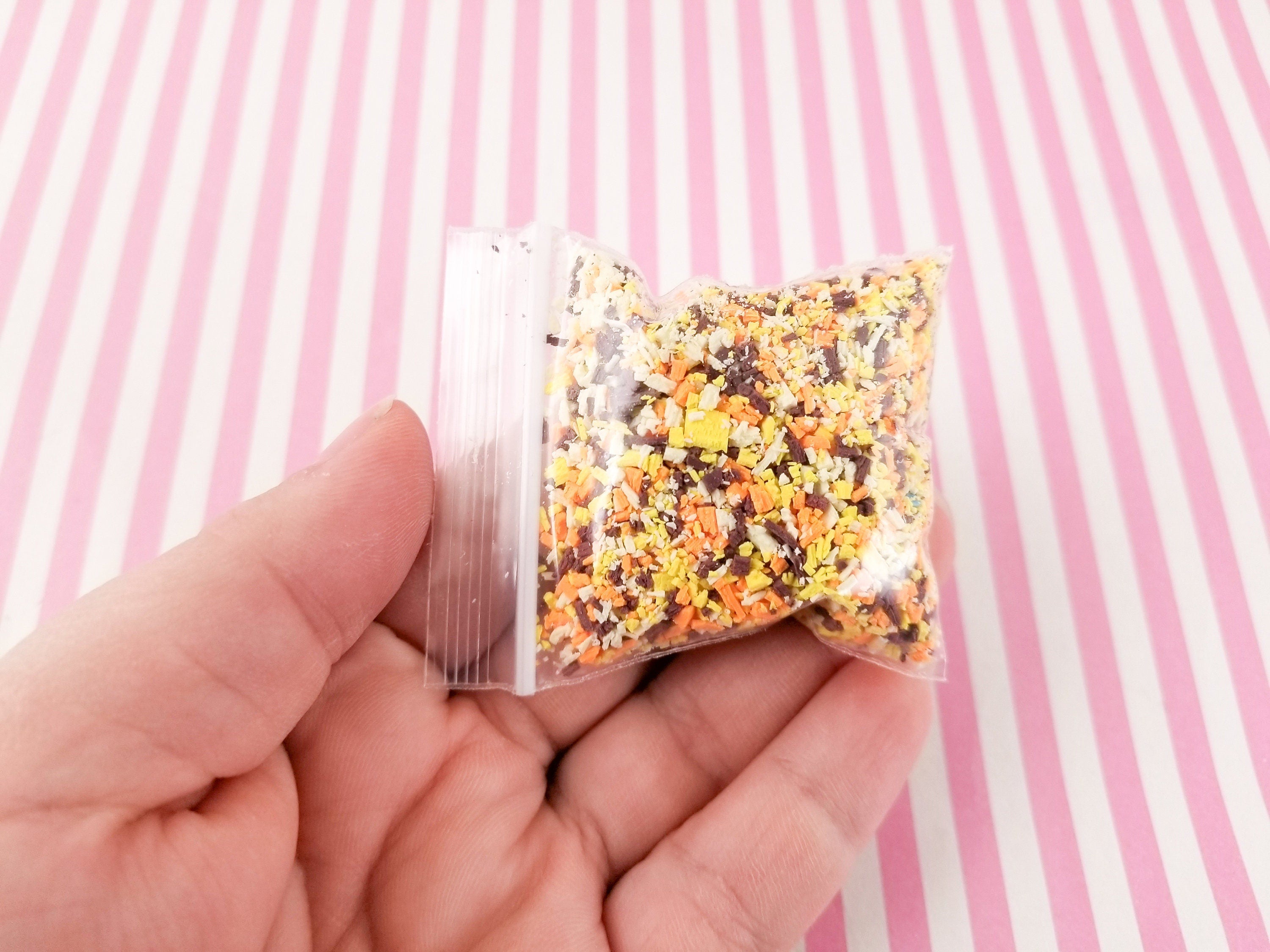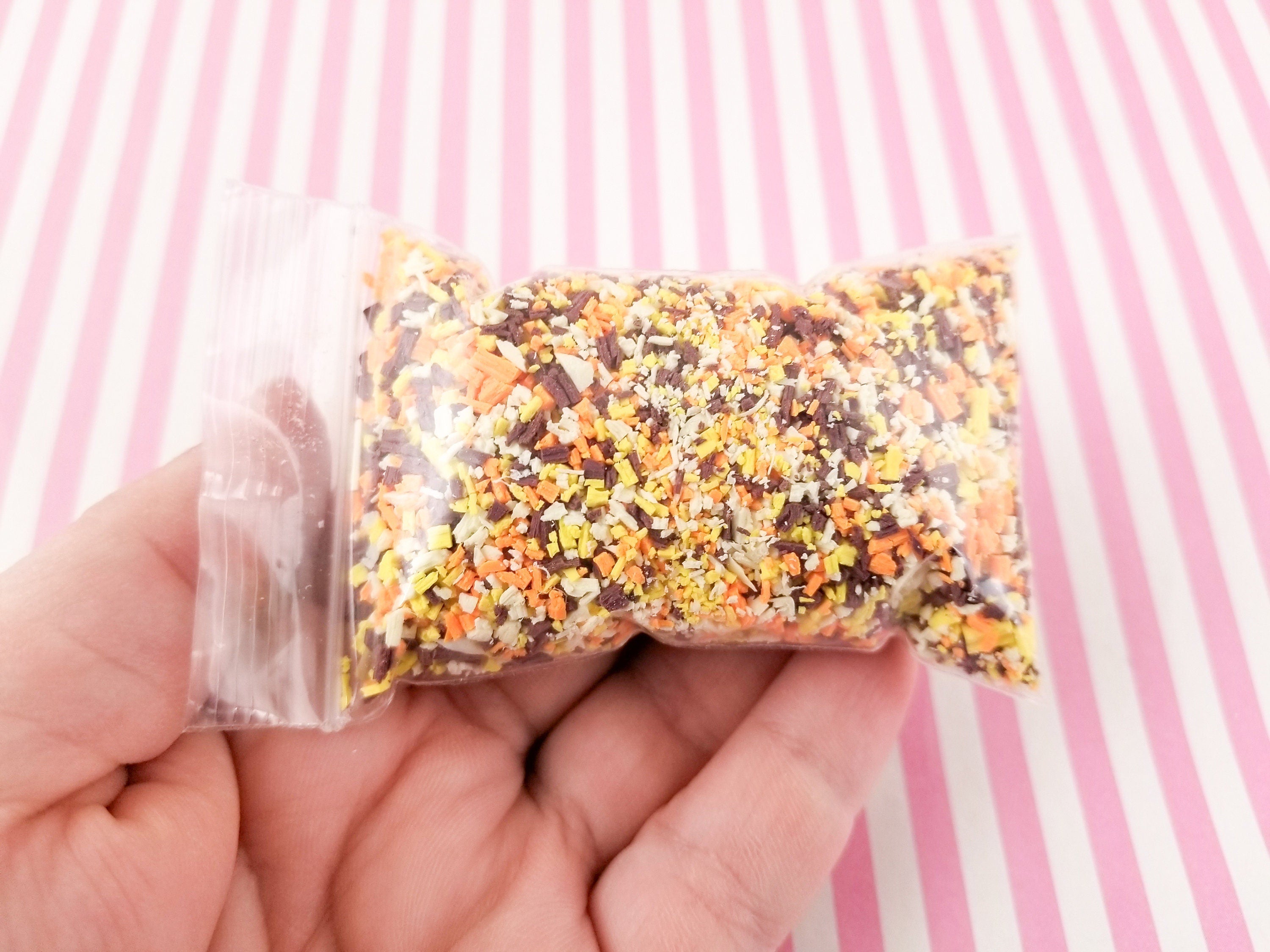 Pumpkin Pie Crumble, Halloween Fruity Pebbles Polymer Clay Candy Multicolor Fake Sprinkles, Colorful Crumbles and Flake Shavings, V196