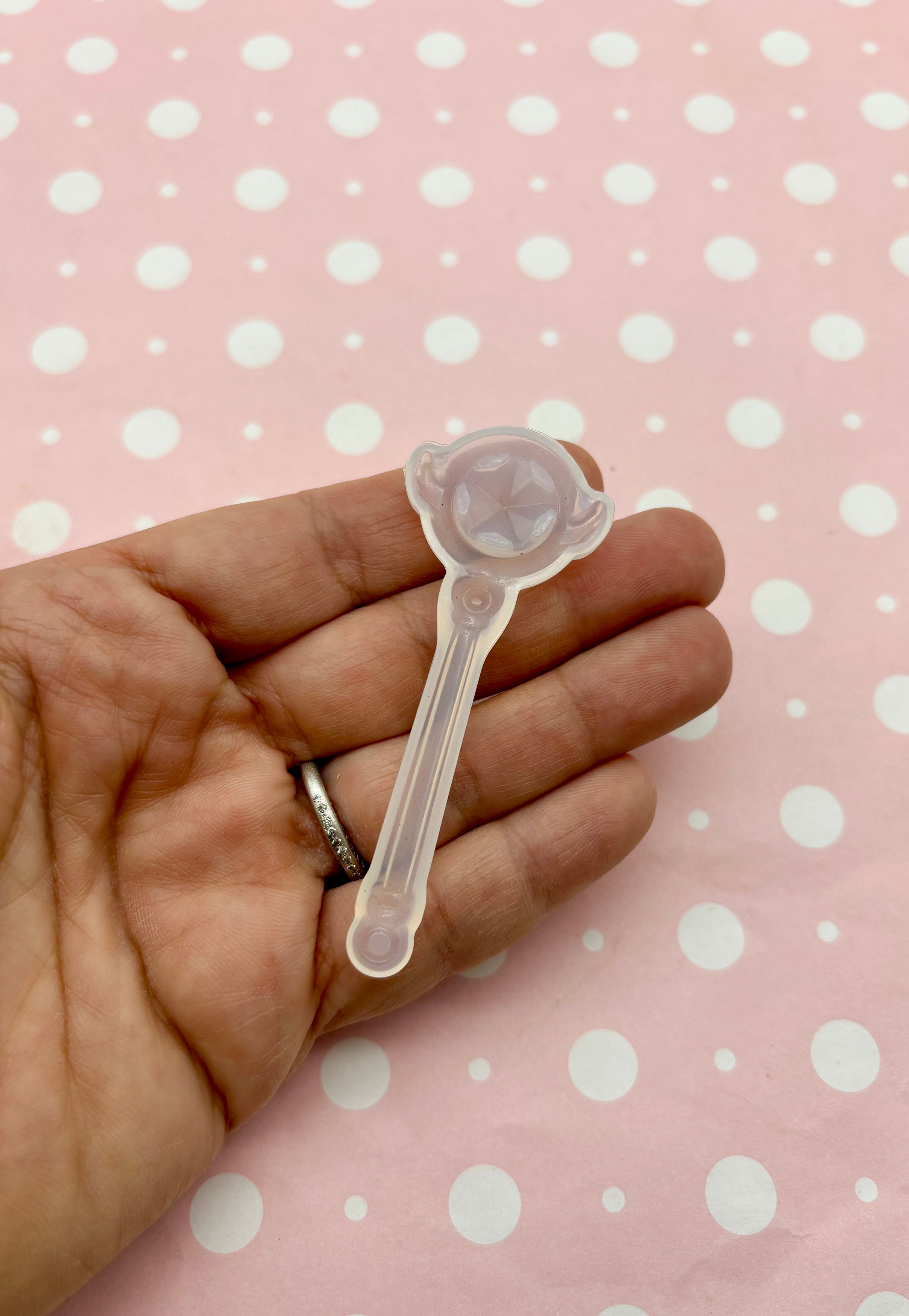 These silicone moon wand pendant mold is awesome. The mold makes one wand that is about 65mm long and 25mm wide, (a little over 2.5 inches long.)