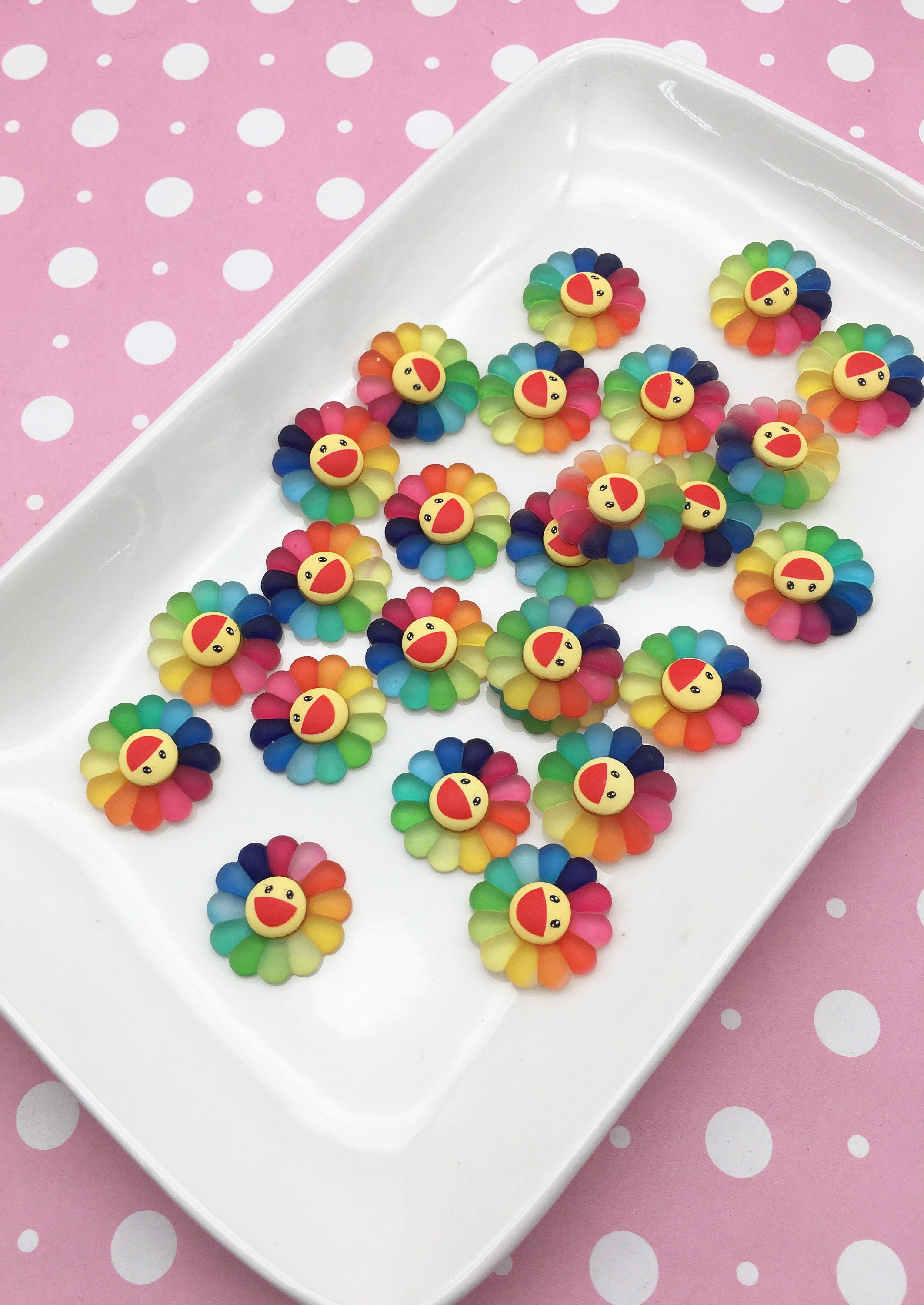 Six 22mm Resin Colorful Smiling Flower Cabochons, Cute Pop Flowers 1070