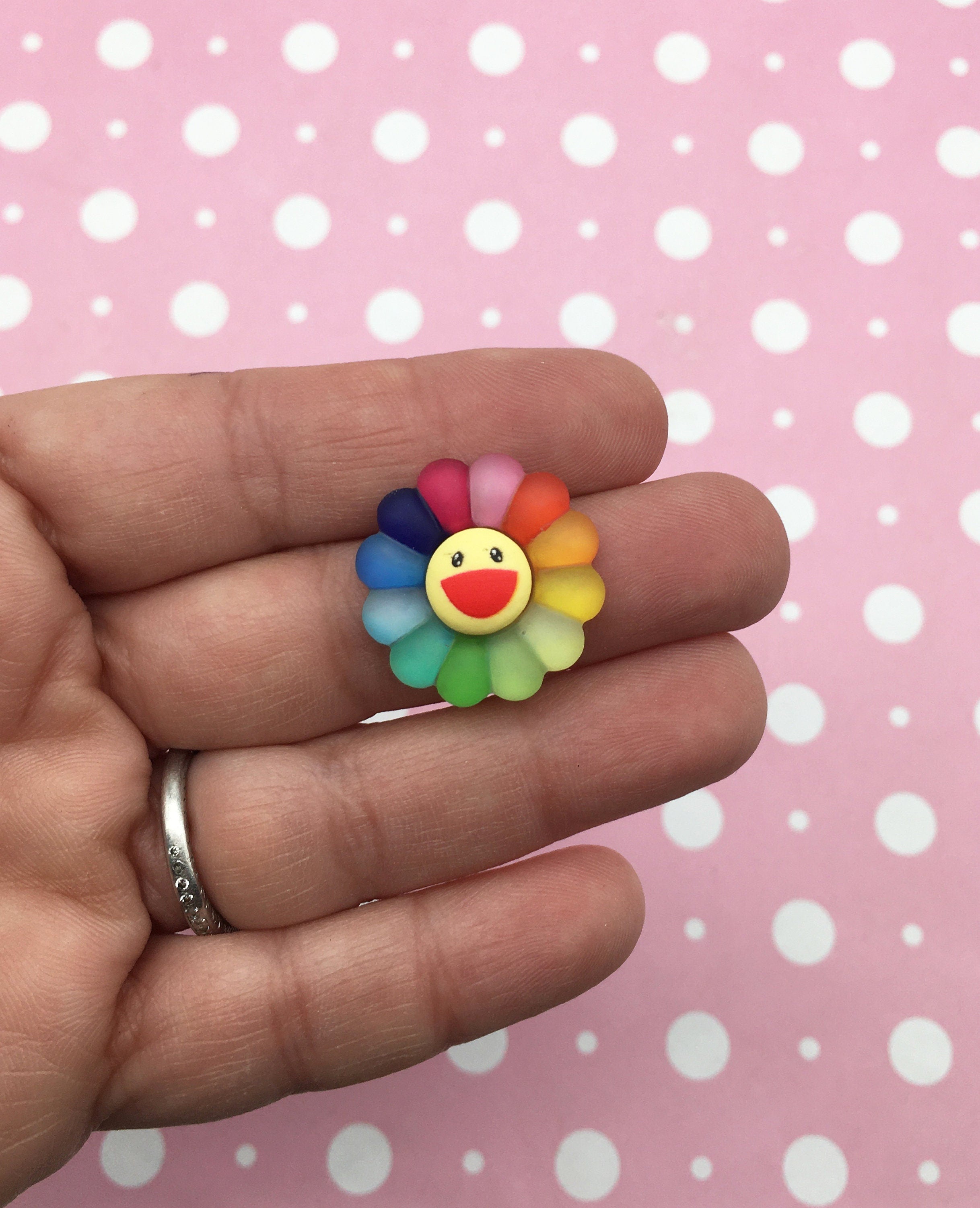 These are cute bright smiling rainbow flower cabochons. They are 22mm across and about 4mm thick. They are frosted and have a layer of color underneath. This this gives them a lovely effect.
