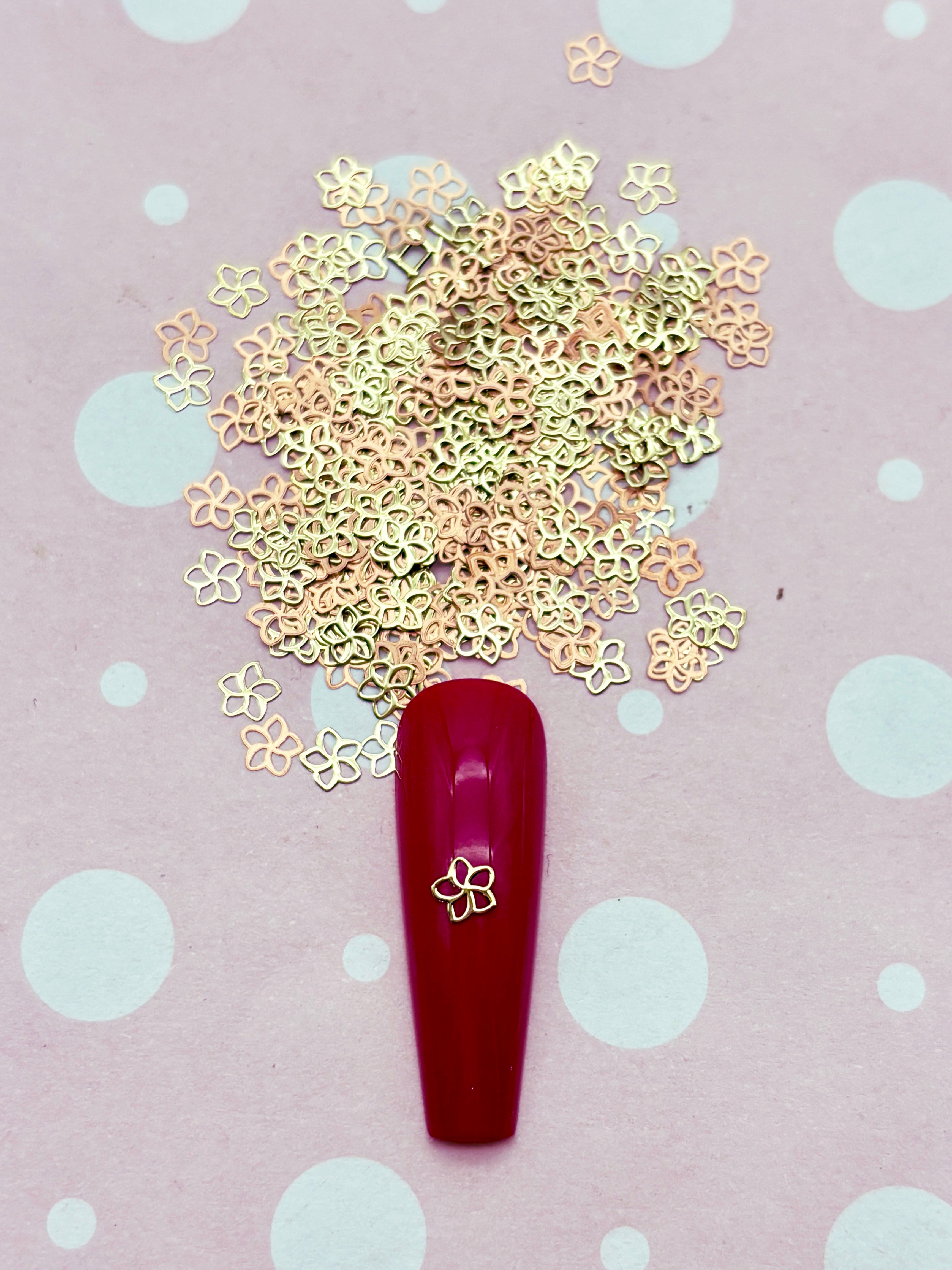These tiny 5mm metallic Flower metal nail or resin embellishment cabs are super cute. These are available in 50 pieces or bulk lots of 800-1000pcs. Please note you are getting over 50% off the the price of the 50 count when you order the bulk packs.