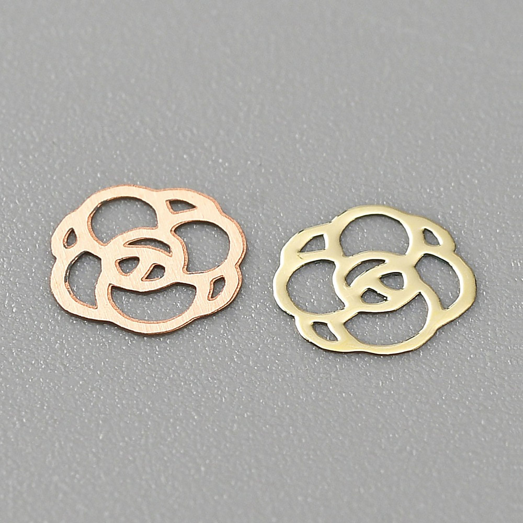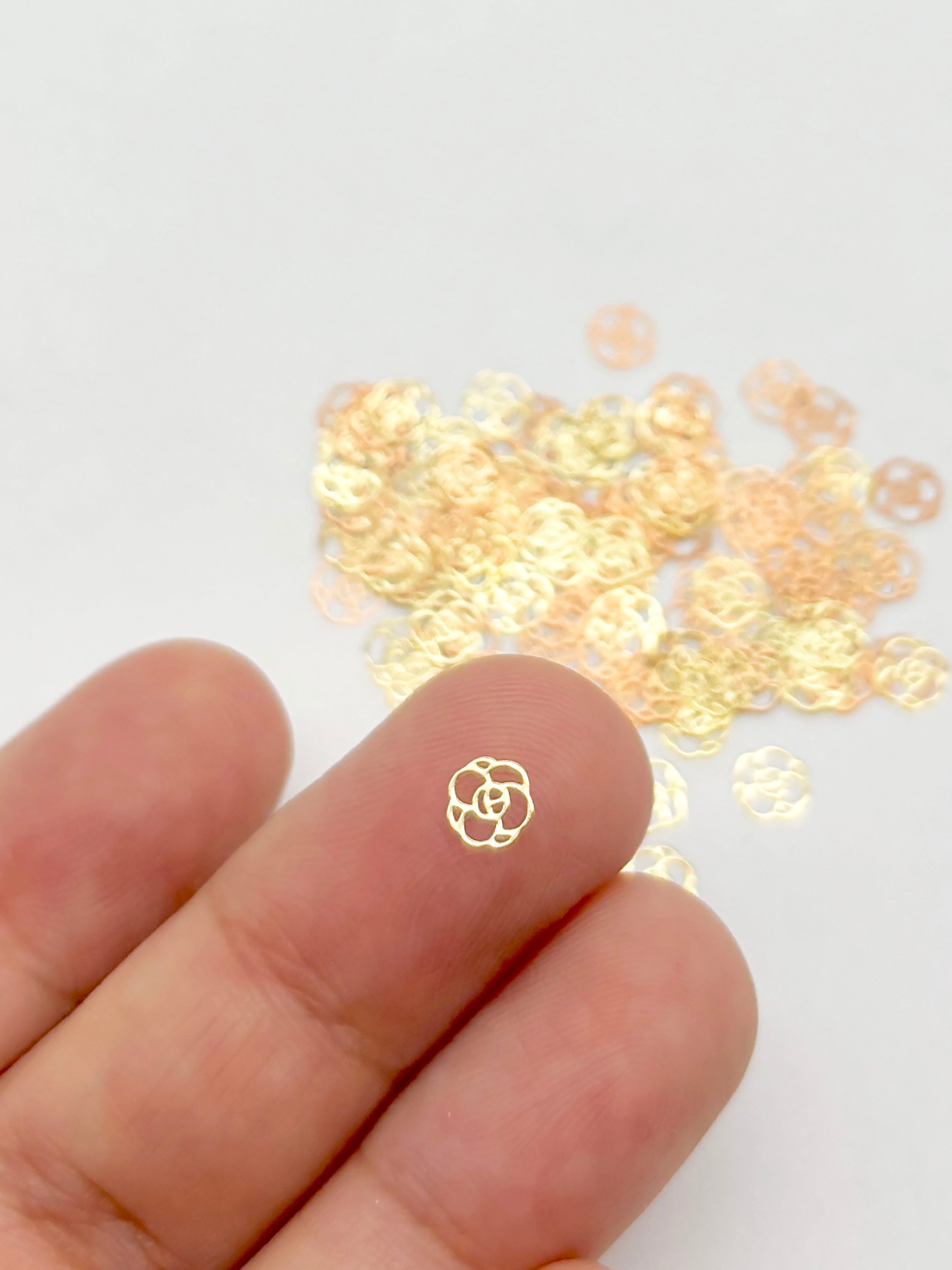 Tiny 5mm Gold Toned Metallic Rose Flower Cabochons, Cute Kawaii Nail Cabs, Charm Resin Supplies L348